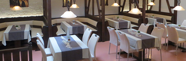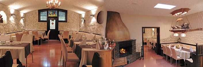 Im Gemütlichen Ambiente vom Restaurant, mit offenem Kamin und 45 Sitzplätzen, können Sie sich von unserem Chefkoch mit seinen Spezialitäten aus der Region verwöhnen lassen.